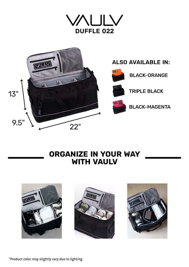 The VAULV Duffle 022 is the strong and versatile urban baggage perfect for your sneaker, travel and athletic needs.