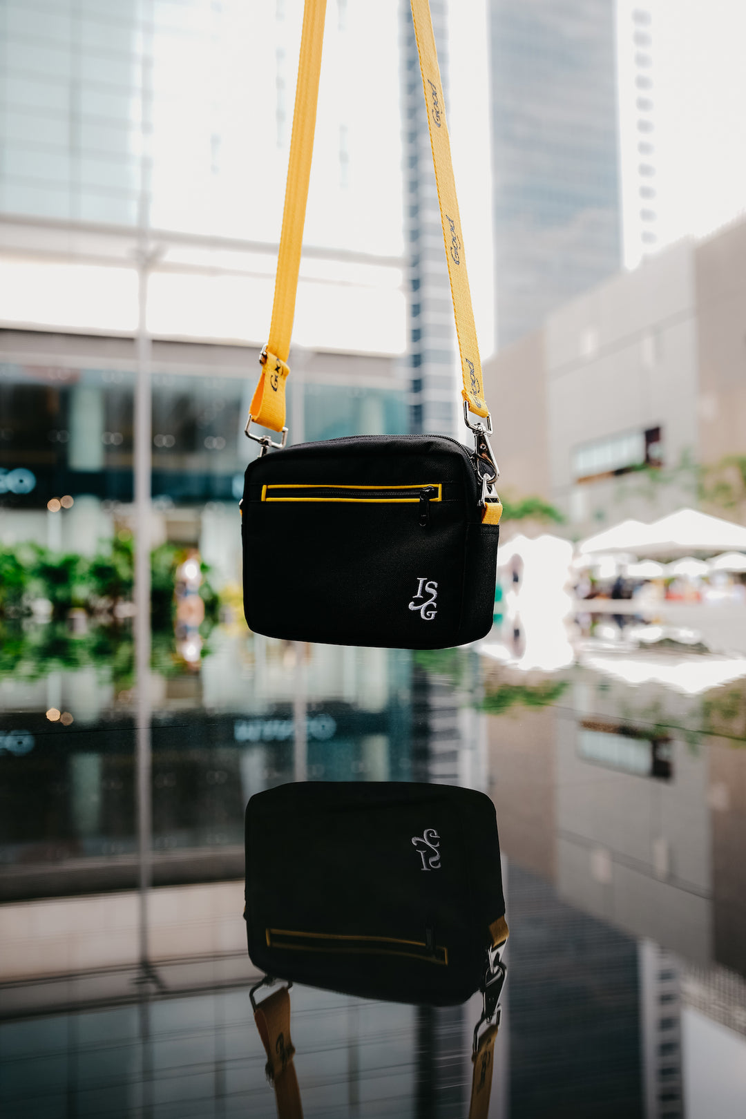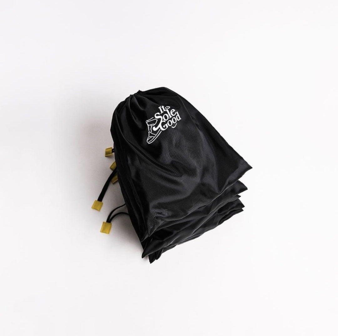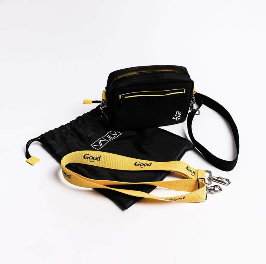 Each bag comes with two interchangable straps: A black strap for VAULV and a yellow strap for It's Sole Good
